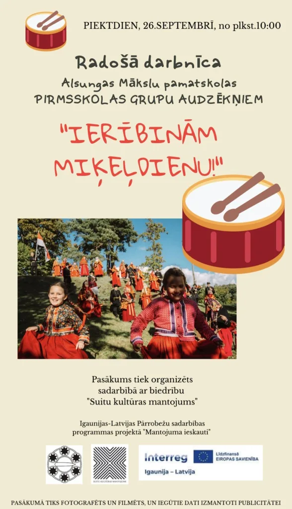Īstenots otrais projekta kultūras mantojuma pasākums bērniem – tradīciju diena Alsungas bērnudārza bērniem 26.09.2025.